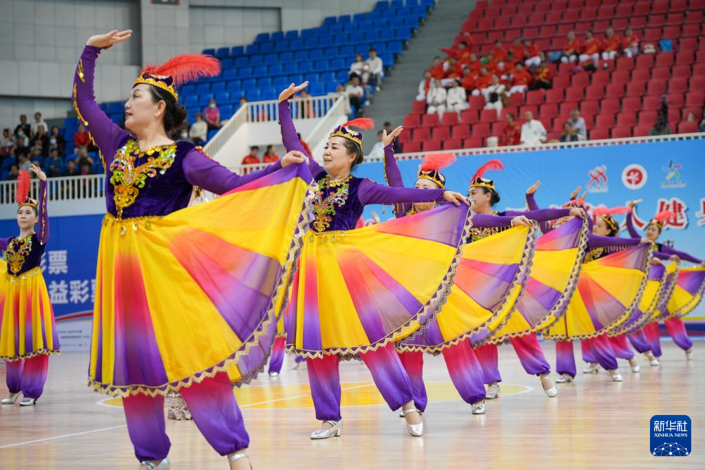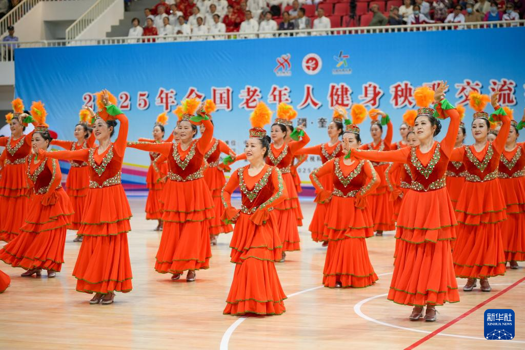 集体项目,2025年全国老年人健身秧歌交换勾当正在新疆维吾尔自治区奎屯市体育馆揭幕。表演者一招一式神韵十...